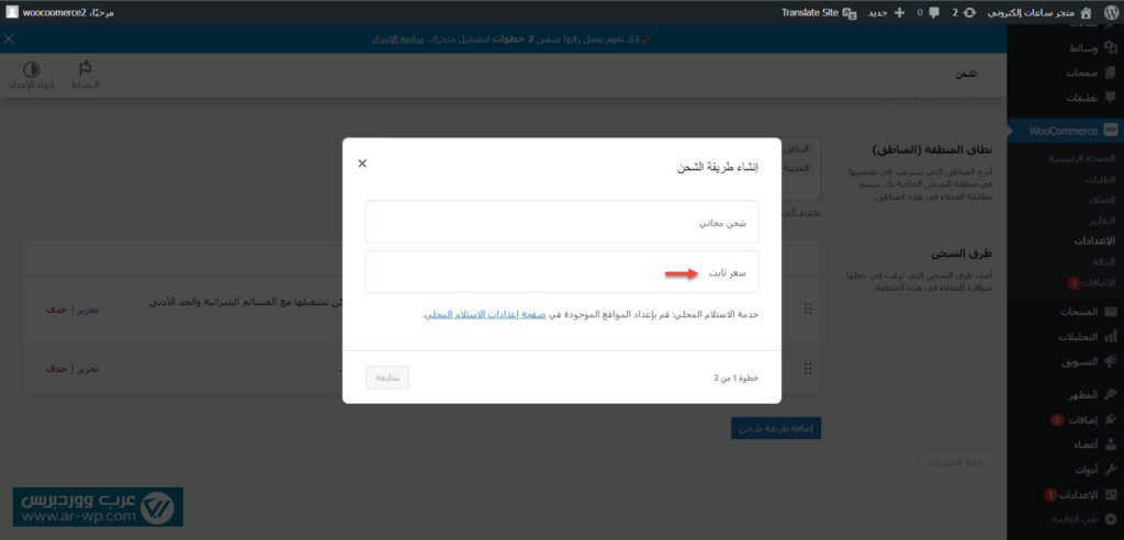 ضبط إعدادات الشحن في متاجر ووكومرس