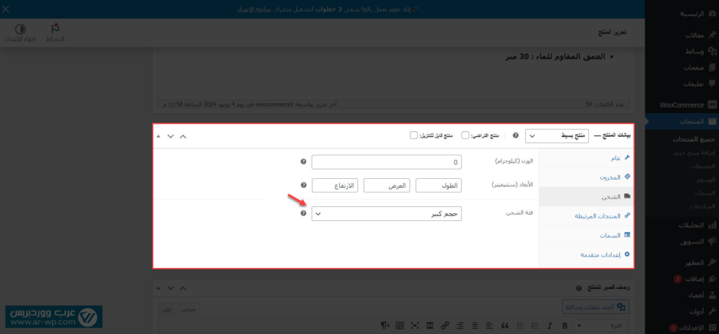 الآن، عند إضافة المنتجات على متجرك، يجب تحديد المنتجات الخاصة بفئة الشحن مثل “حجم كبير“. بالتالي، سيتم احتساب تكاليف الشحن للمنتج ذات الحجم الكبير بالتكلفة الأساسية مضافًا إليها تكلفة الفئة إضافية، أما المنتجات التقليدية فستكون بالتكلفة الأساسية فقط.