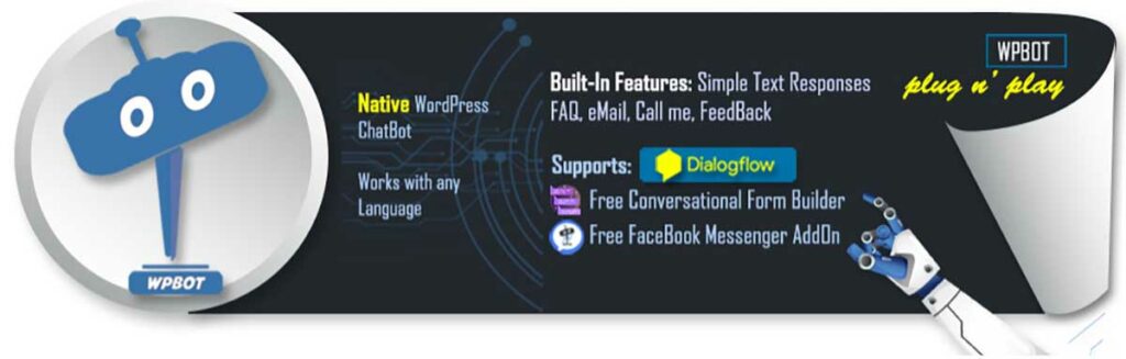 - DialogFlow : وهو محرك الذكاء الاصطناعي الخاص بهذه الإضافة حتى يتمكن روبوت الدردشة التفاعلية من التعلم من سلوك المستخدم.