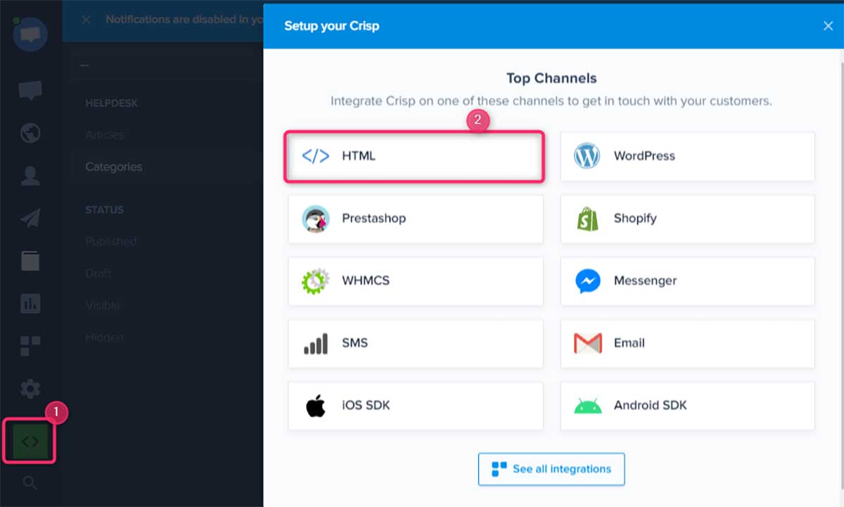 شرح كيفية إضافة API روبوت دردشة تفاعلية باستخدام crisp.chat :
