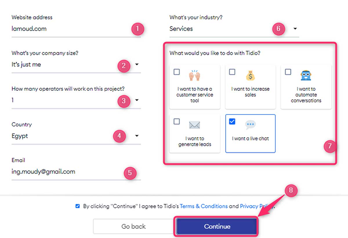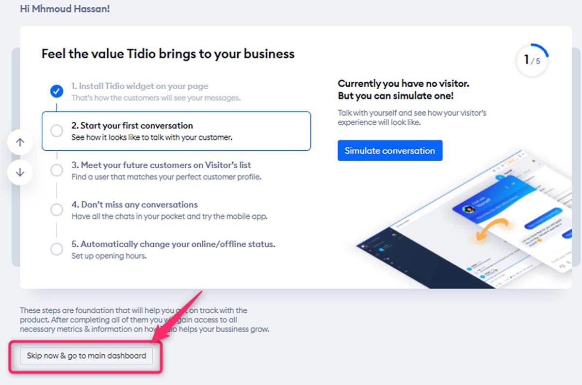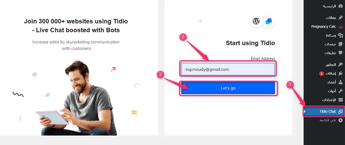 لبدء تشغيل الدردشة التفاعلية باستخدام إضافة Tidio اتبع التعليمات التالية :