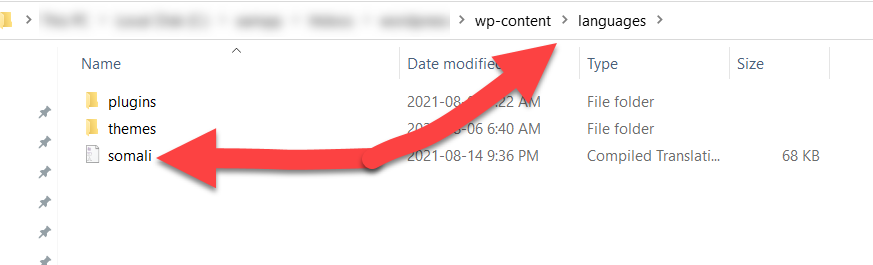 الآن مطلوب منك رفع هذا الملف إلى استضافة موقعك سواء عبر الفايل مانجر أو عبر الـ FTP أو بأي طريقة تعرفها، المهم أنك سترفع ملف الترجمة إلى فولدر languages الموجود داخل فولدر wp-content.