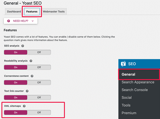اذهب إلى: SEO → الإعدادات → المميزات.